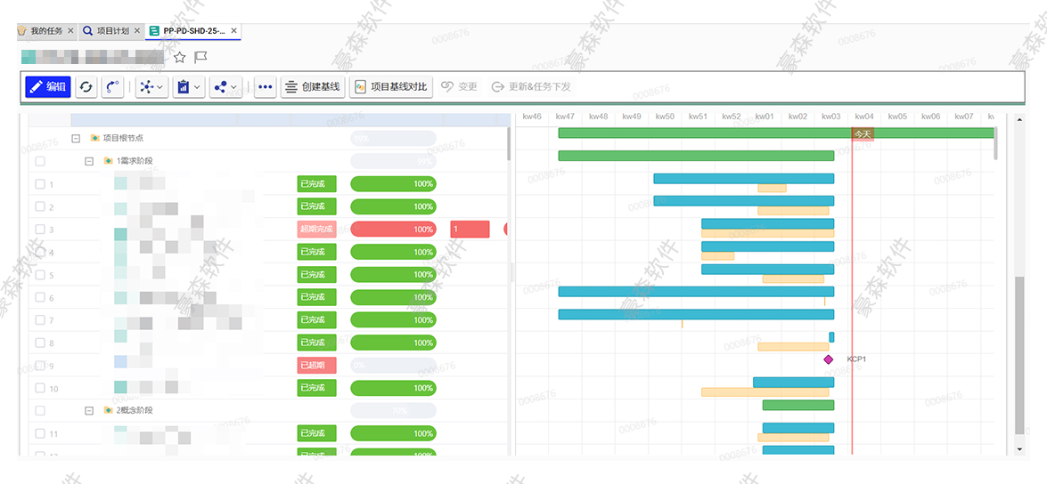 甘特视图:以图形化的方式展示了项目的整体结构和时间线,方便用户直观地了解项目进展情况和任务之间的依赖关系;