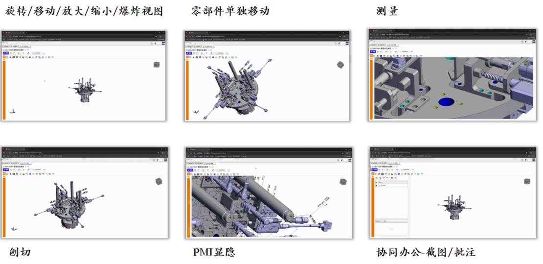 某高端装备公司设计总监反馈:“无需离开熟悉的设计软件,即可在CAD菜单中完成零件搜索、借用、检入/检出等PLM操作。”非设计人员无需安装昂贵庞大的 CAD 软件,即可查看、批注三维模型,极大方便采购、工艺、市场等部门协同,打破信息壁垒。